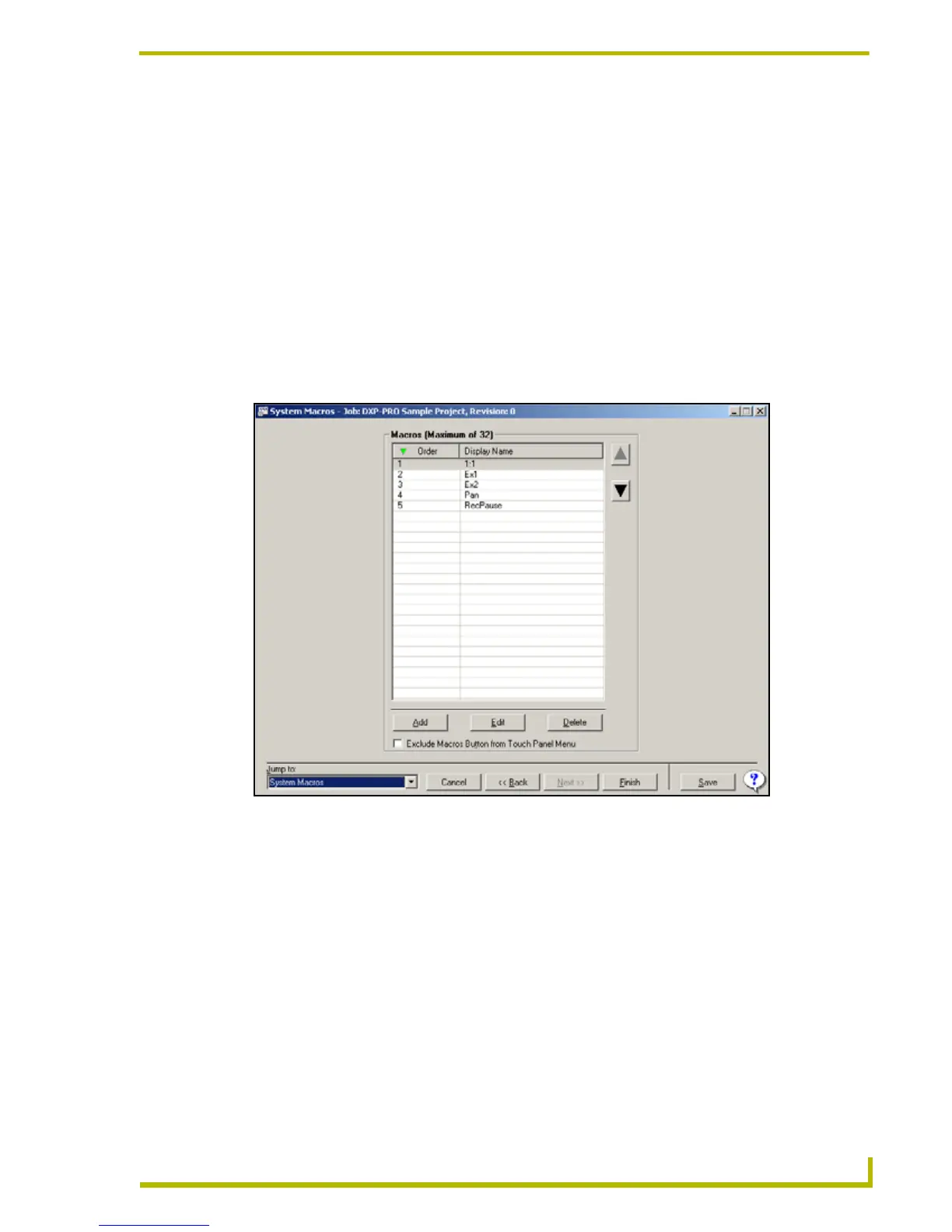A macro is a series of commands that are triggered by a single button on the touch panel. An