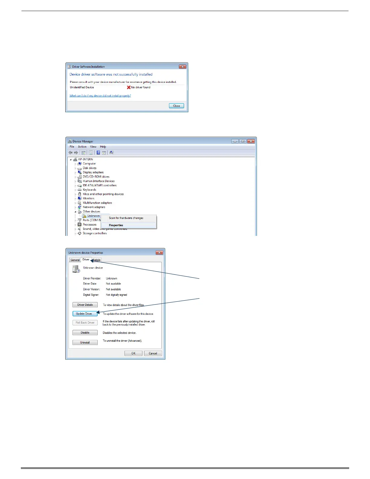 NOTE: The following dialog boxes appear only during the initial USB connection. Once the virtual COM port has been assigned to the