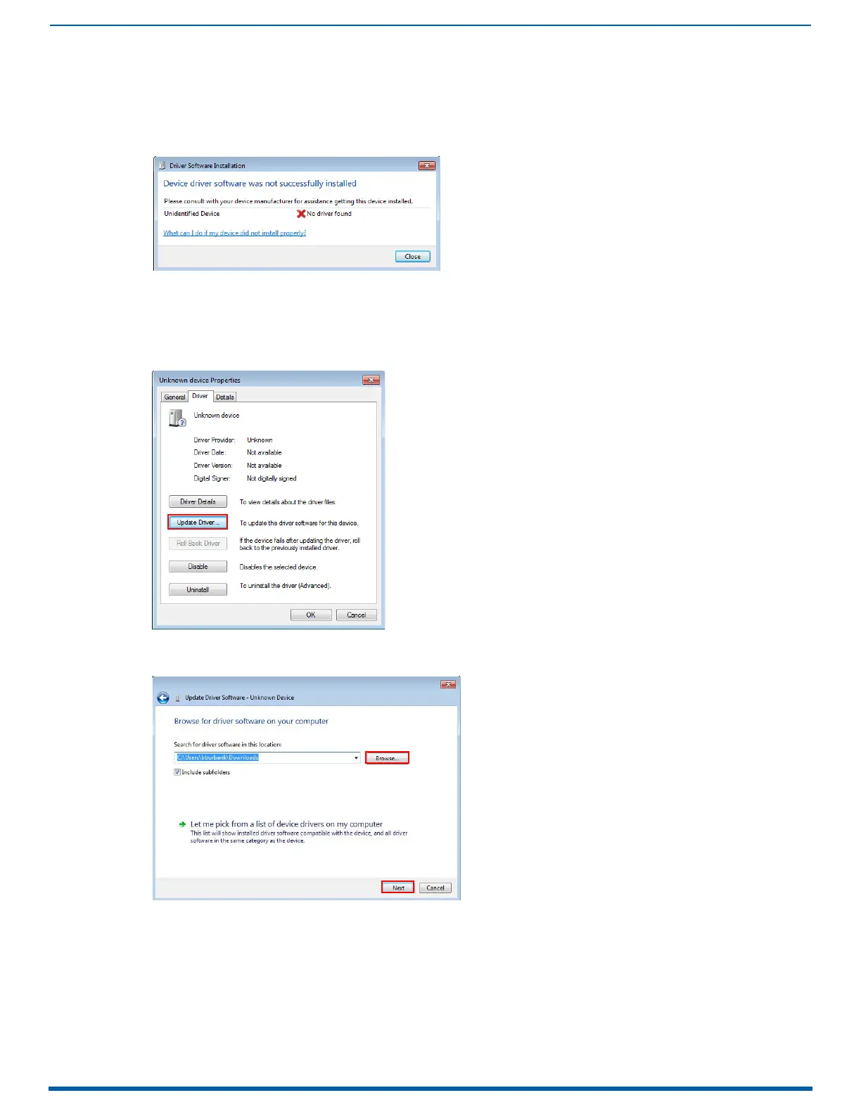 FIG. 172 Update Driver Software - Unknown Device dialog