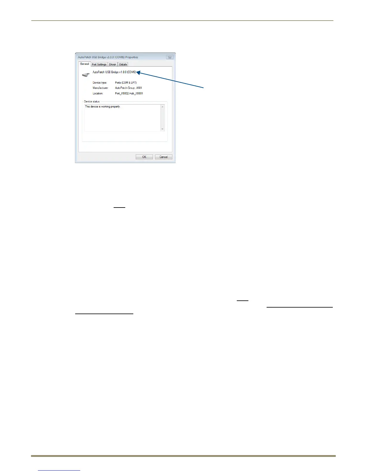 10. Make note of the COM port number assigned to the AutoPatch USB Bridge. This port number must be entered when