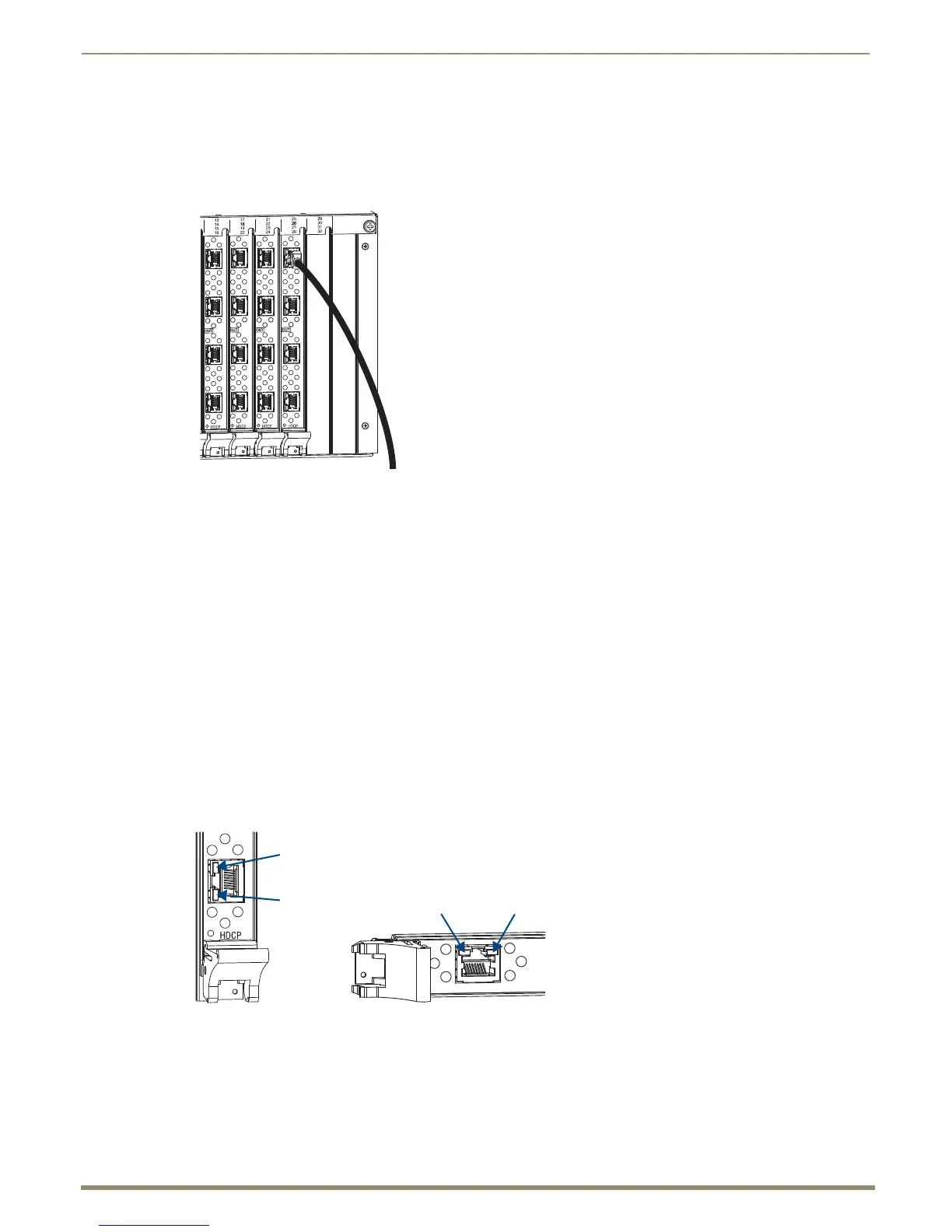 FIG. 52 DXLink connector LEDs (left Enova DGX 32 board orientation; right Enova DGX 8/16/64 Output Board orientation)