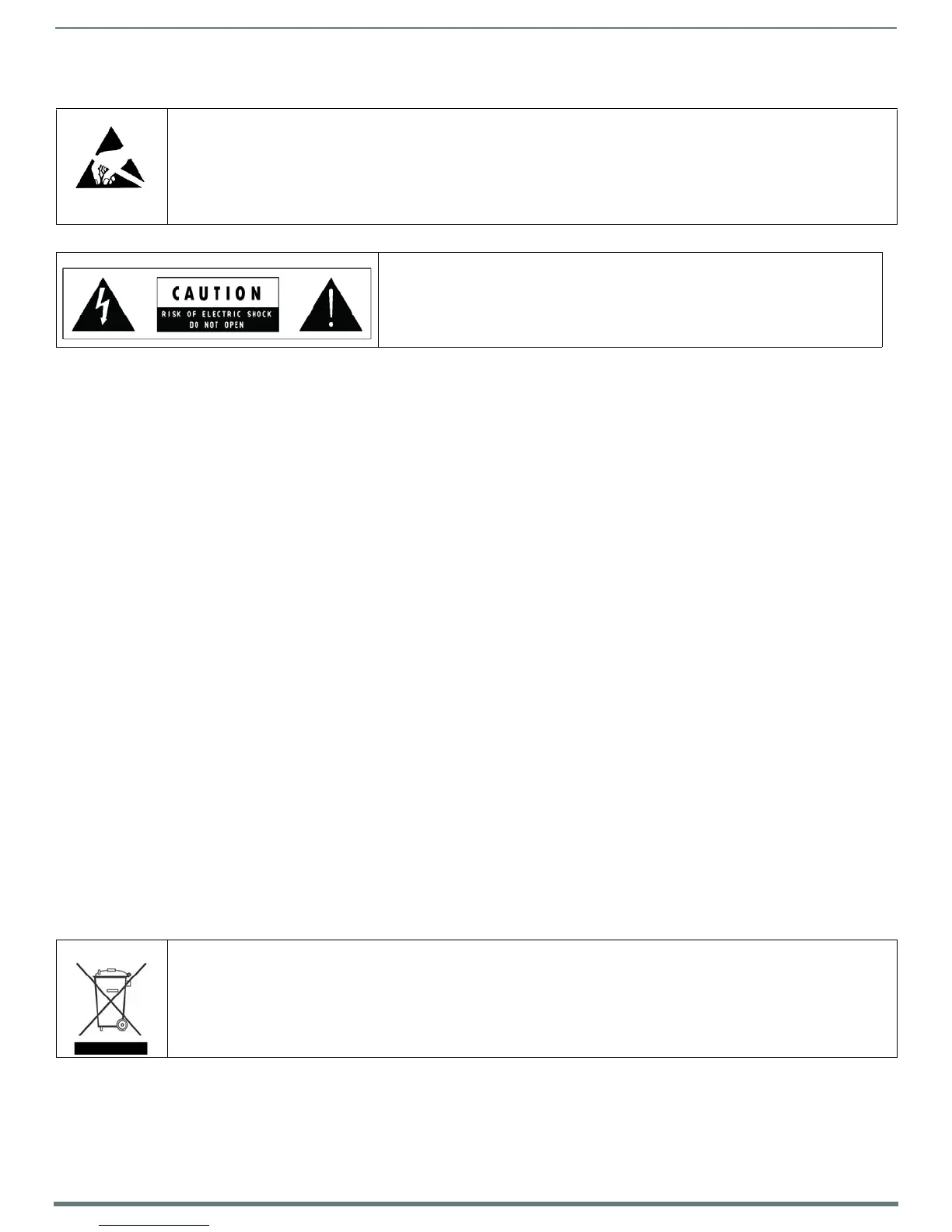 Anyone performing field maintenance on AMX equipment should use an appropriate ESD field service kit complete with at