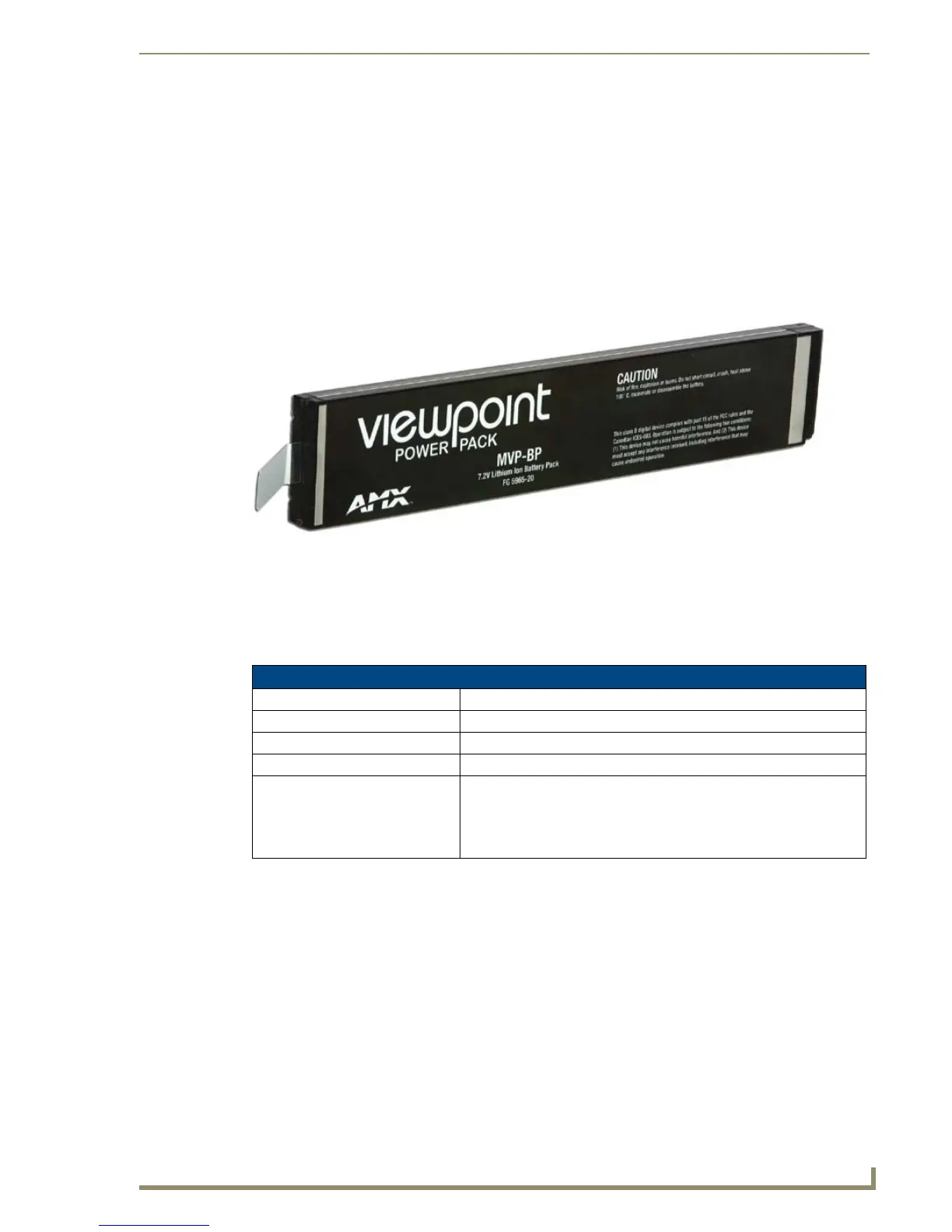 The MVP-BP Power Pack (FG5965-20) is a rechargeable Lithium-Ion battery used to provide power to