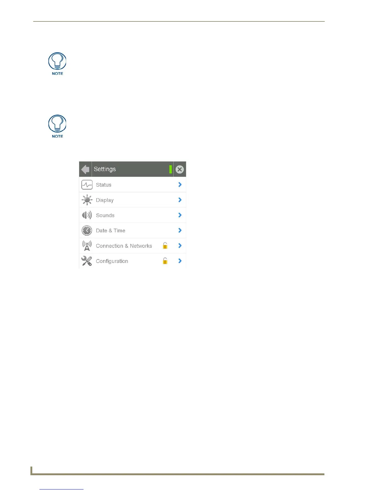 b. From the Settings page, select the Configuration page. This may require entering a password.
