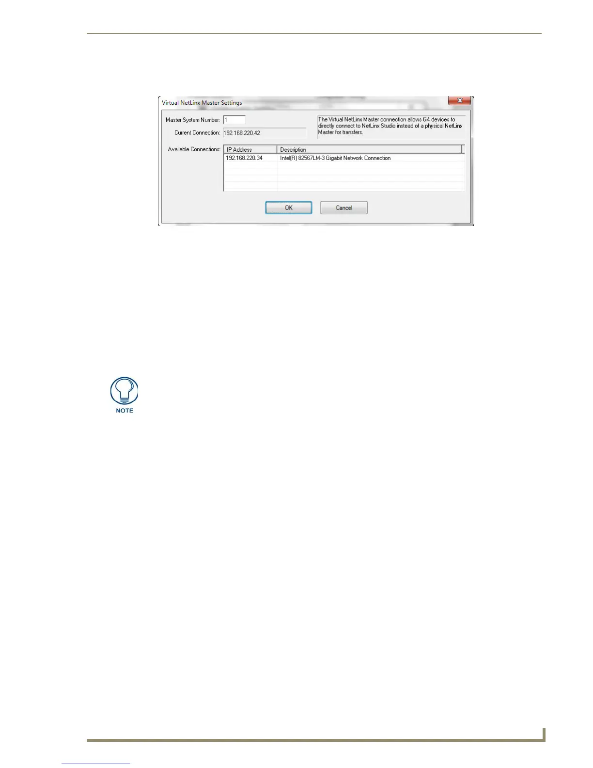 8. In the Virtual NetLinx Master Settings dialog box, click OK to close the box.