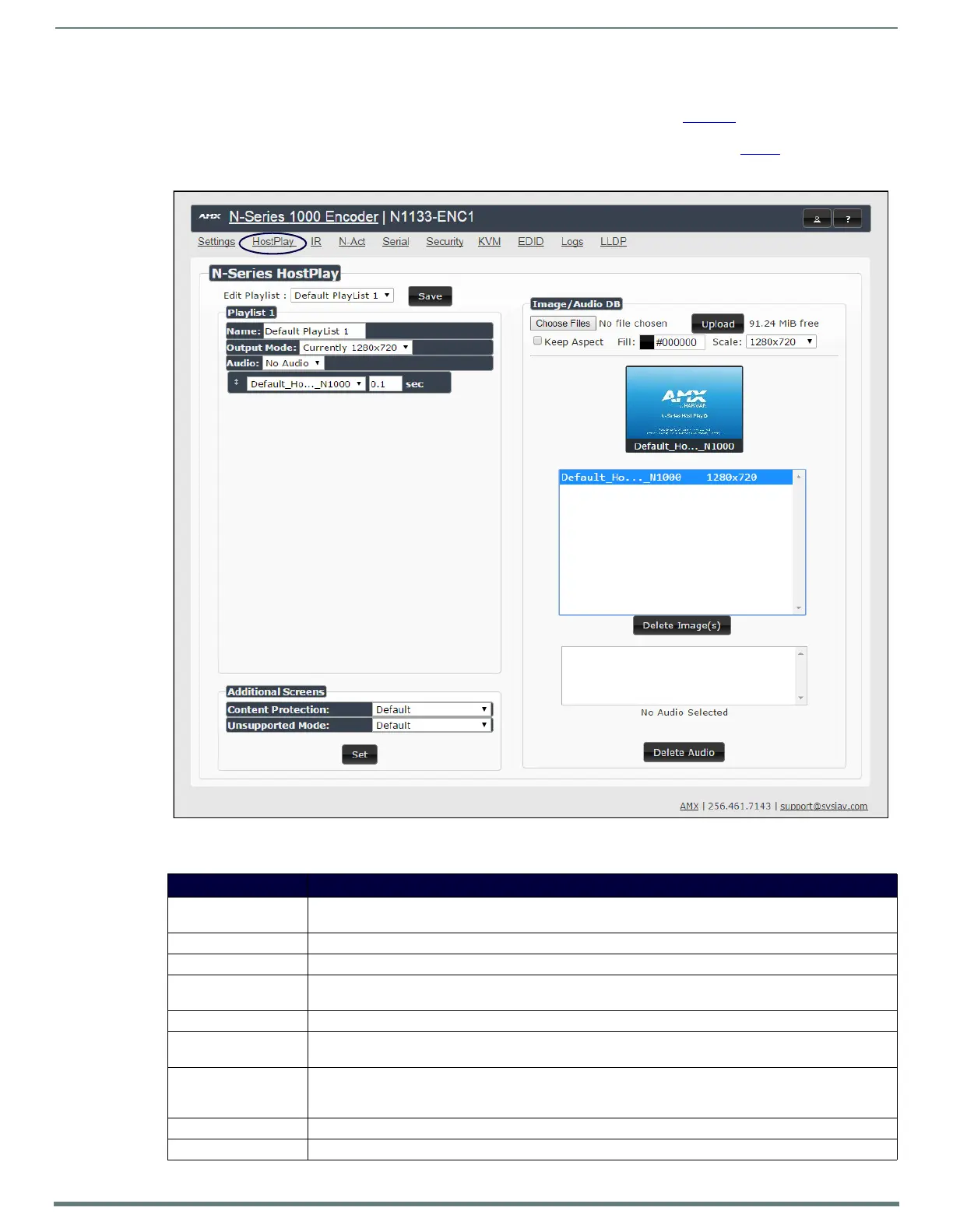 Additional Screens Allows you to choose what is displayed as the HostPlay page if there is an unsupported mode or content
