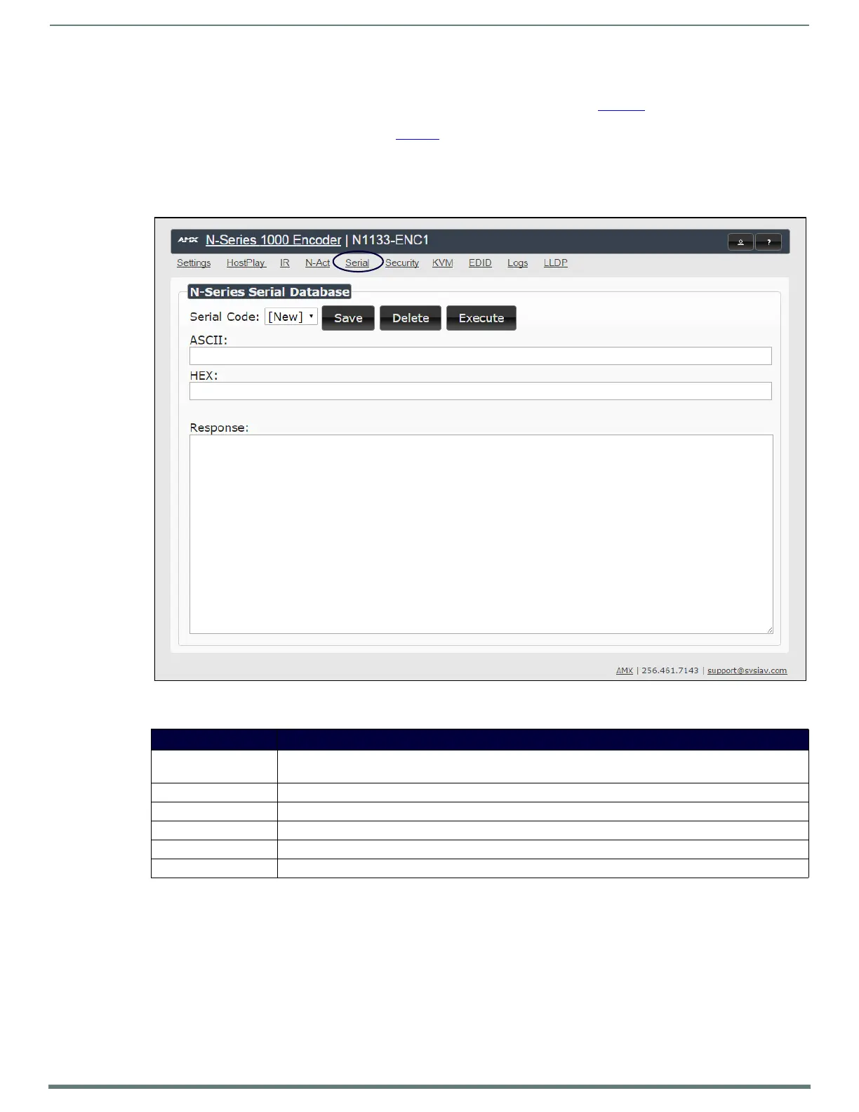 NOTE: If the Port 5004/Serial Port is currently in use by another device, sending commands from the Serial page will always return a