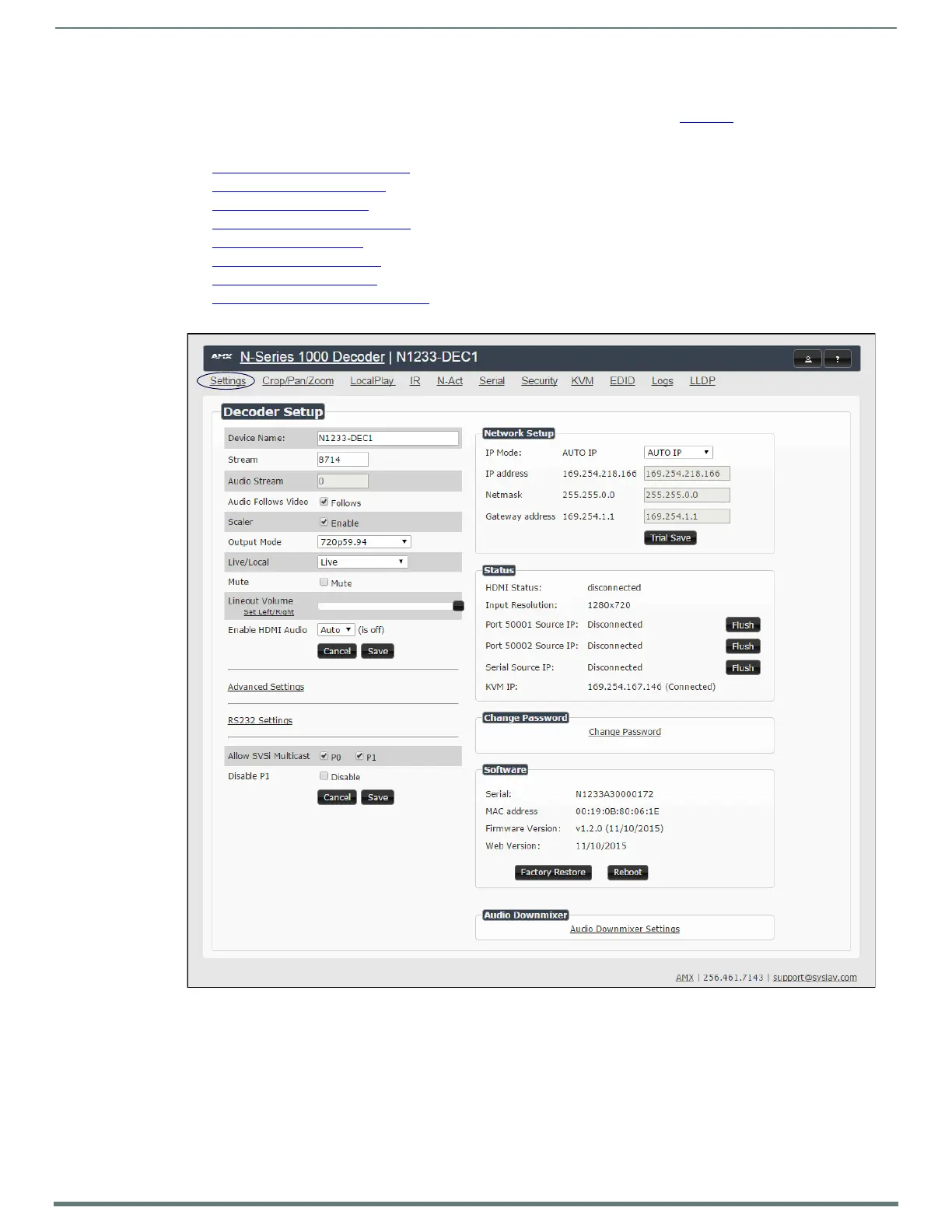 Click the Settings link at the top of any of the main web pages to access the page shown in Figure 40. This page is divided into