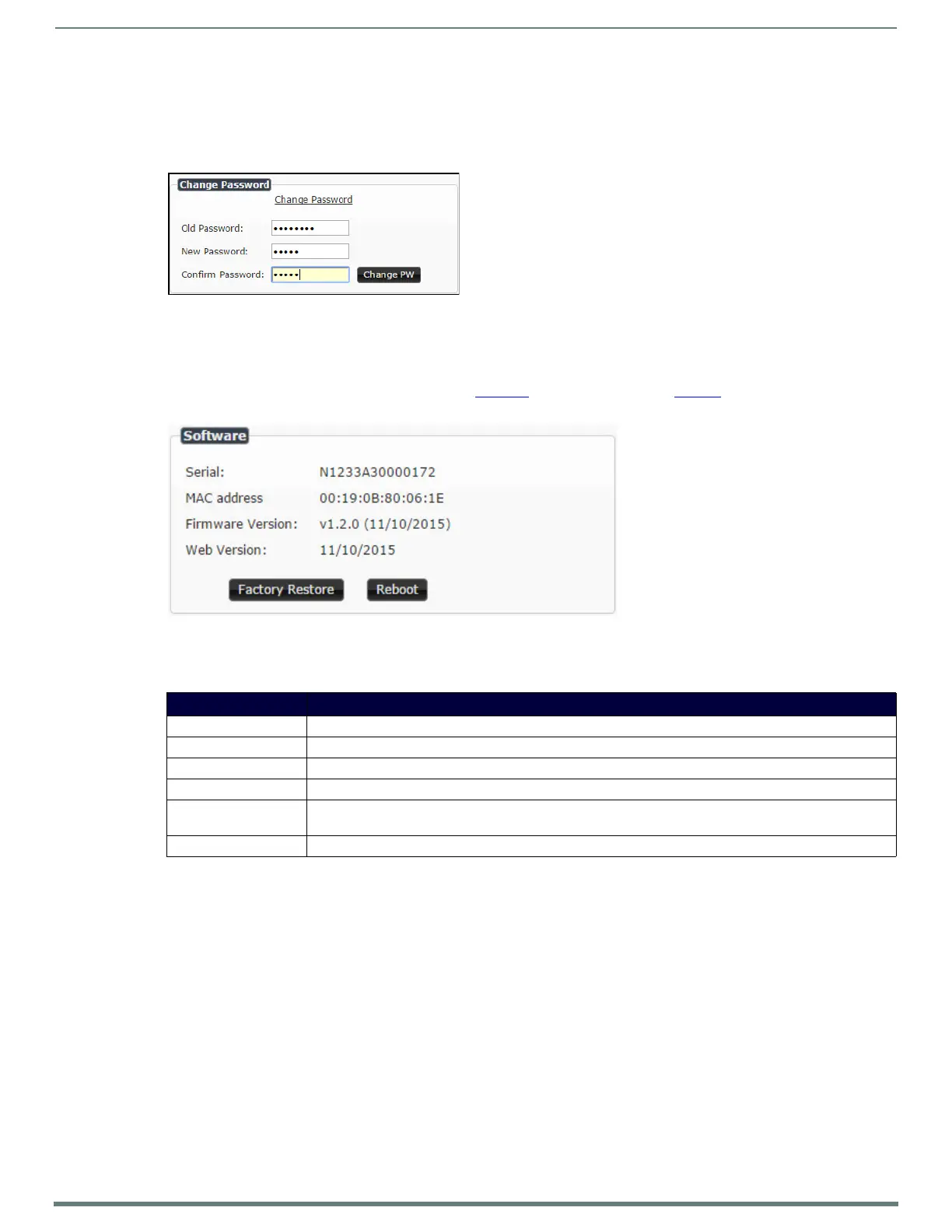 TABLE 18 Settings Page: Software Section
