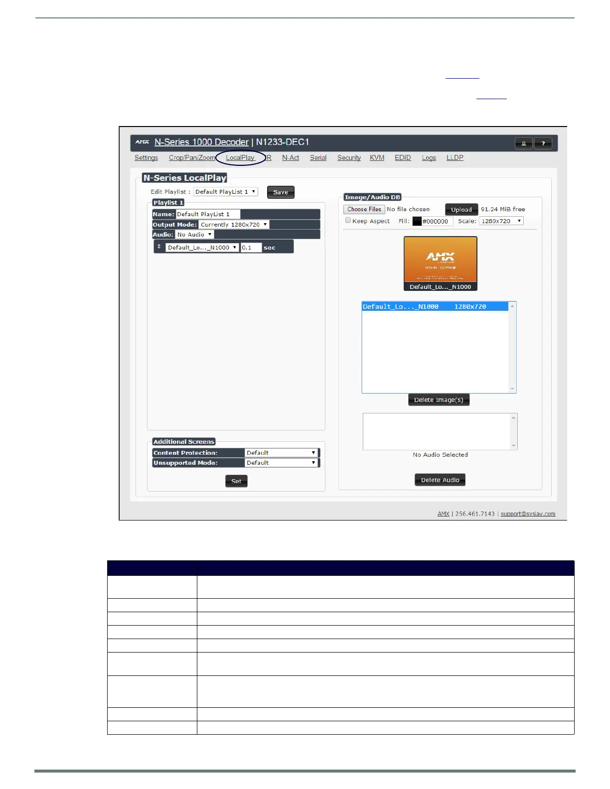Additional Screens Allows you to choose what is displayed as the LocalPlay page if there is a communication or content protection