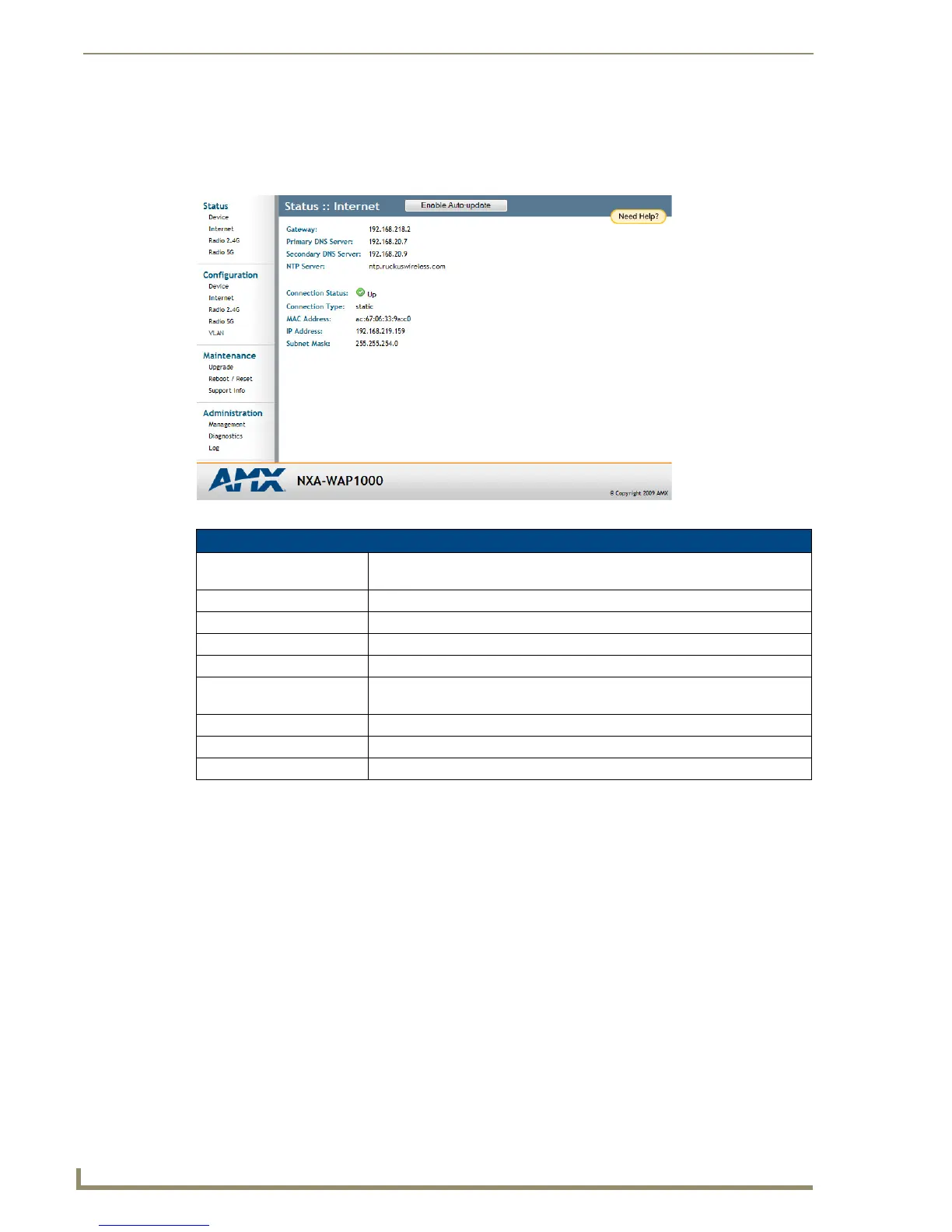 AP to communicate with your local network and the Internet. Information includes IP address, gateway, DNS