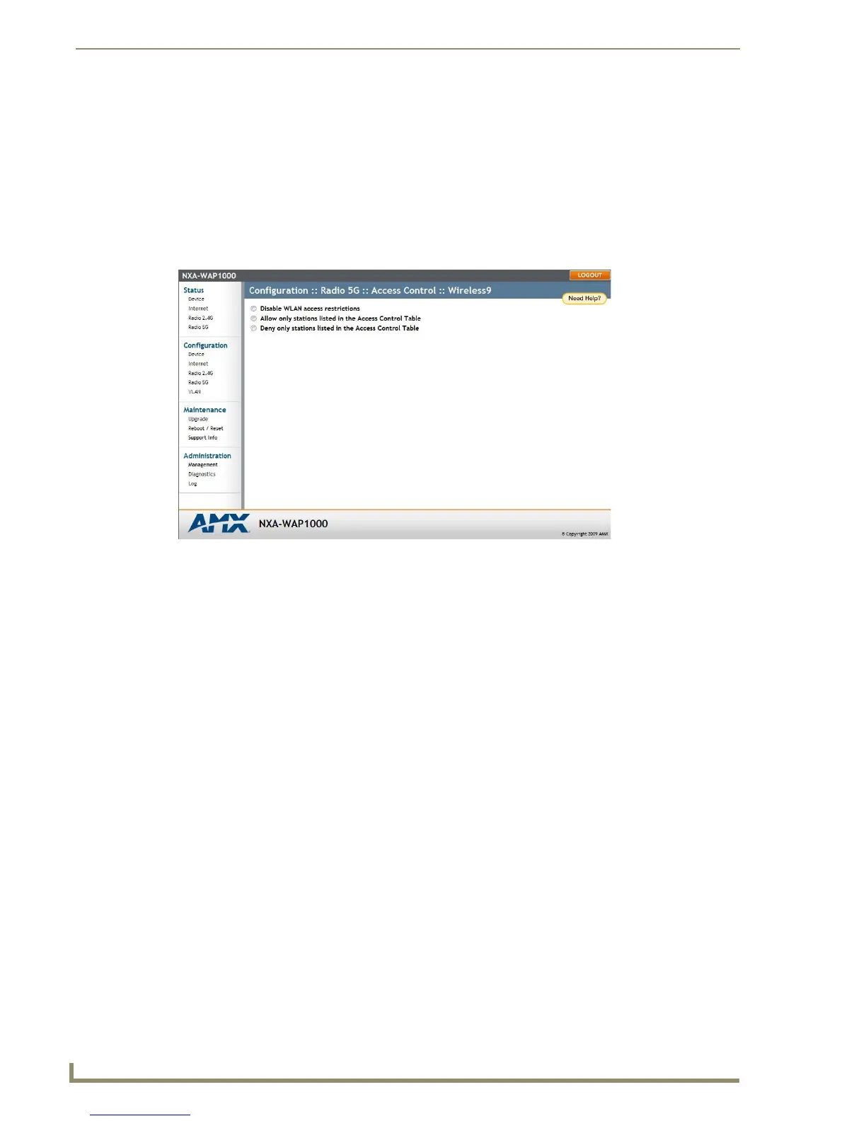 3. Click the Edit Settings button after Access Control. The Configuration :: Wireless :: Access Control ::