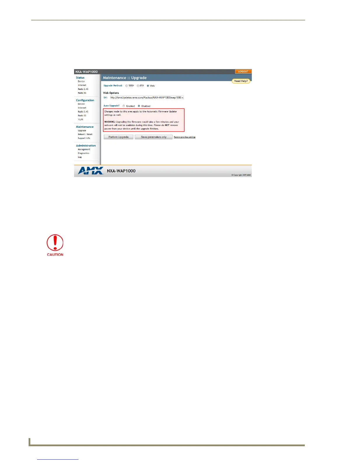 4. Click Perform Upgrade. A status bar appears during the upgrade process.