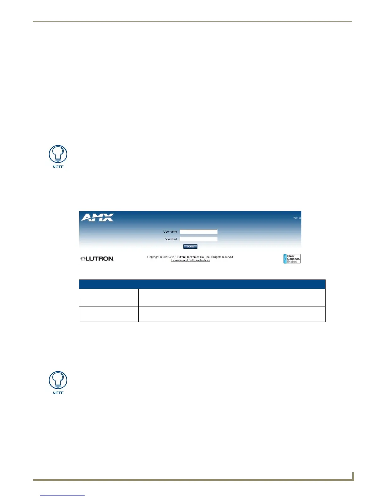 IP address (obtainable either through a ZeroConf-enabled browser or through NetLinx Studio) to access the Login page