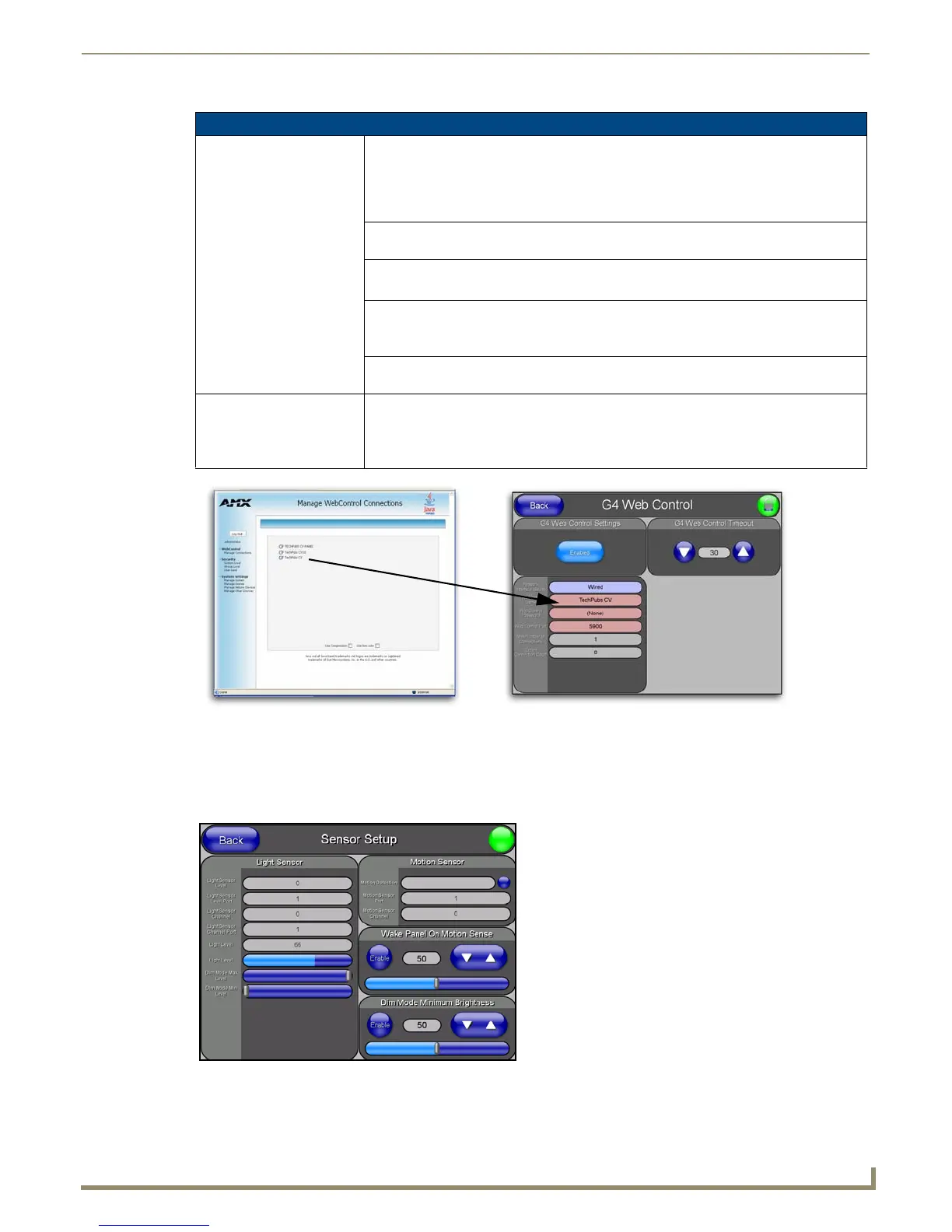 The Sensor Setup page (FIG. 97) allows you to adjust the Light and Motion Sensor parameters on a Modero touch panel.