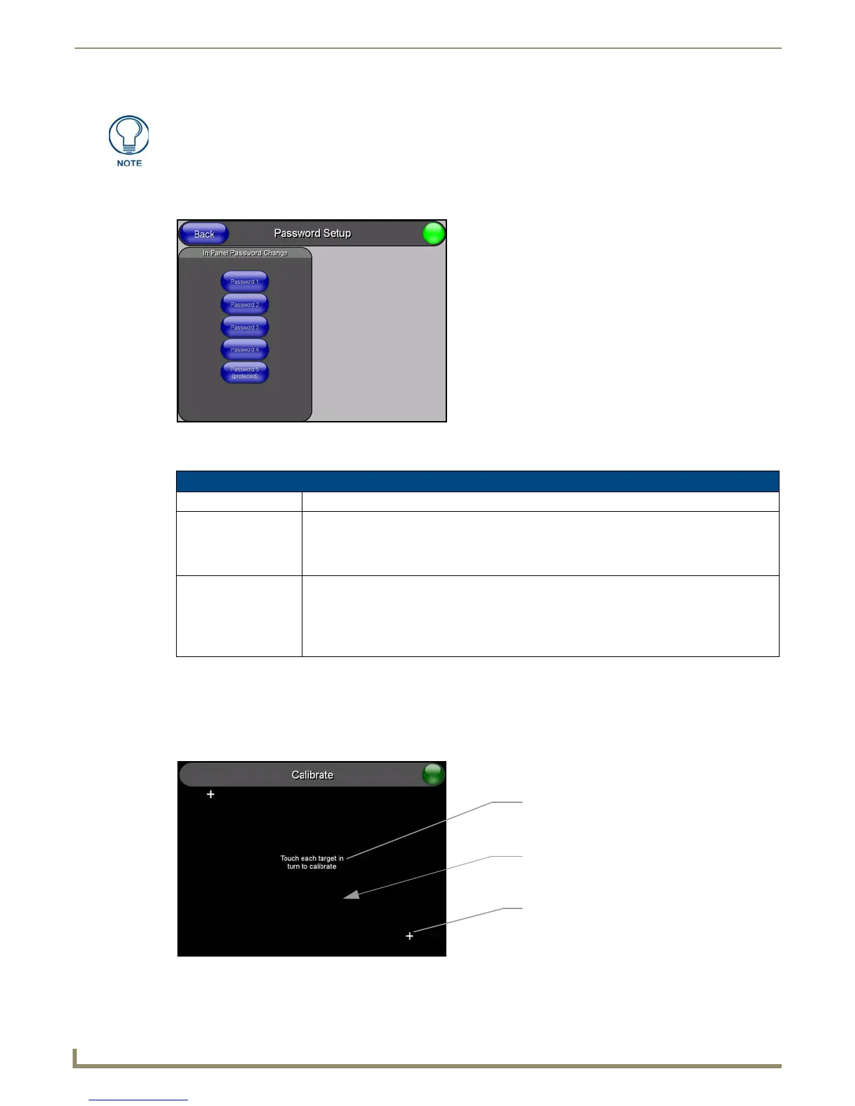 Press the crosshairs to calibrate the panel and return to the last active firmware page.