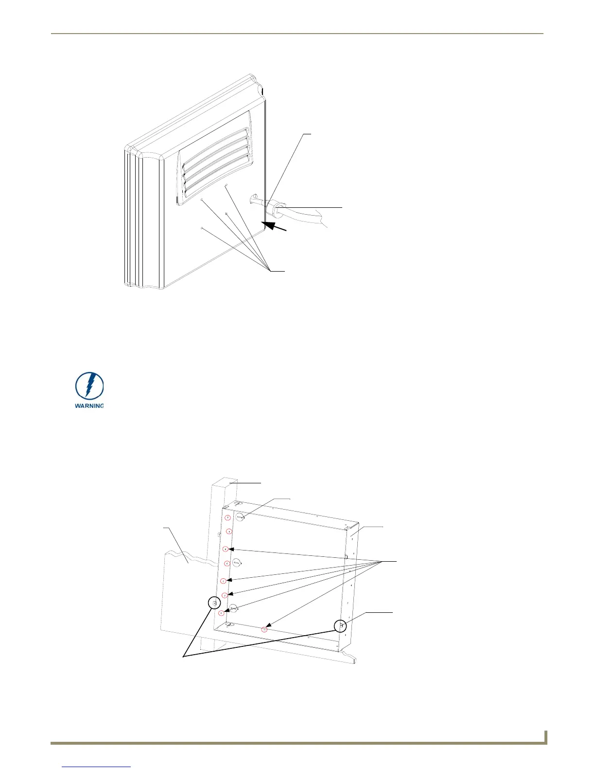 FIG. 37 Screw locations for conduit box attachment in a pre-wall installation