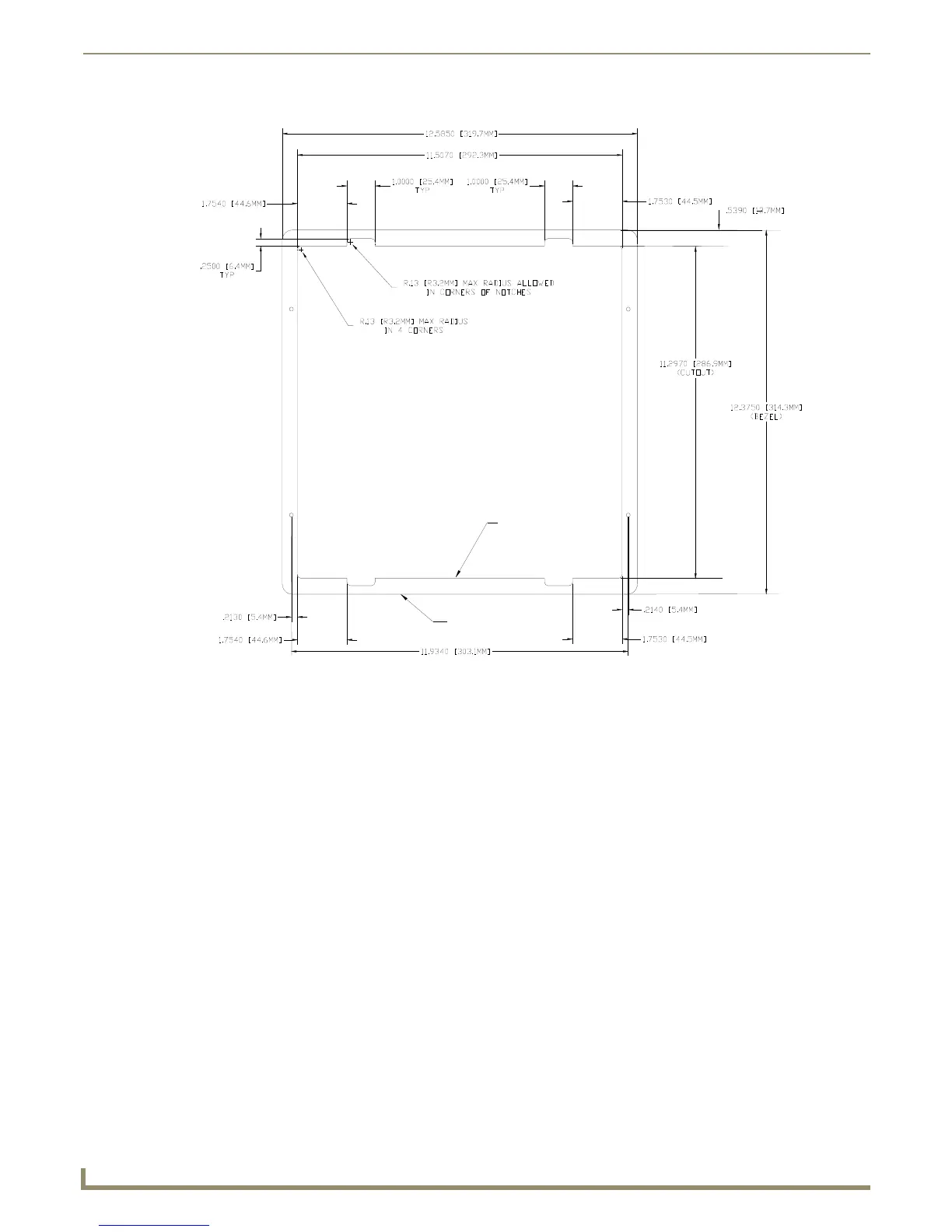 FIG. 39 NXD-1200V 12-inch Wall Mount panel dimensions using expansion clips