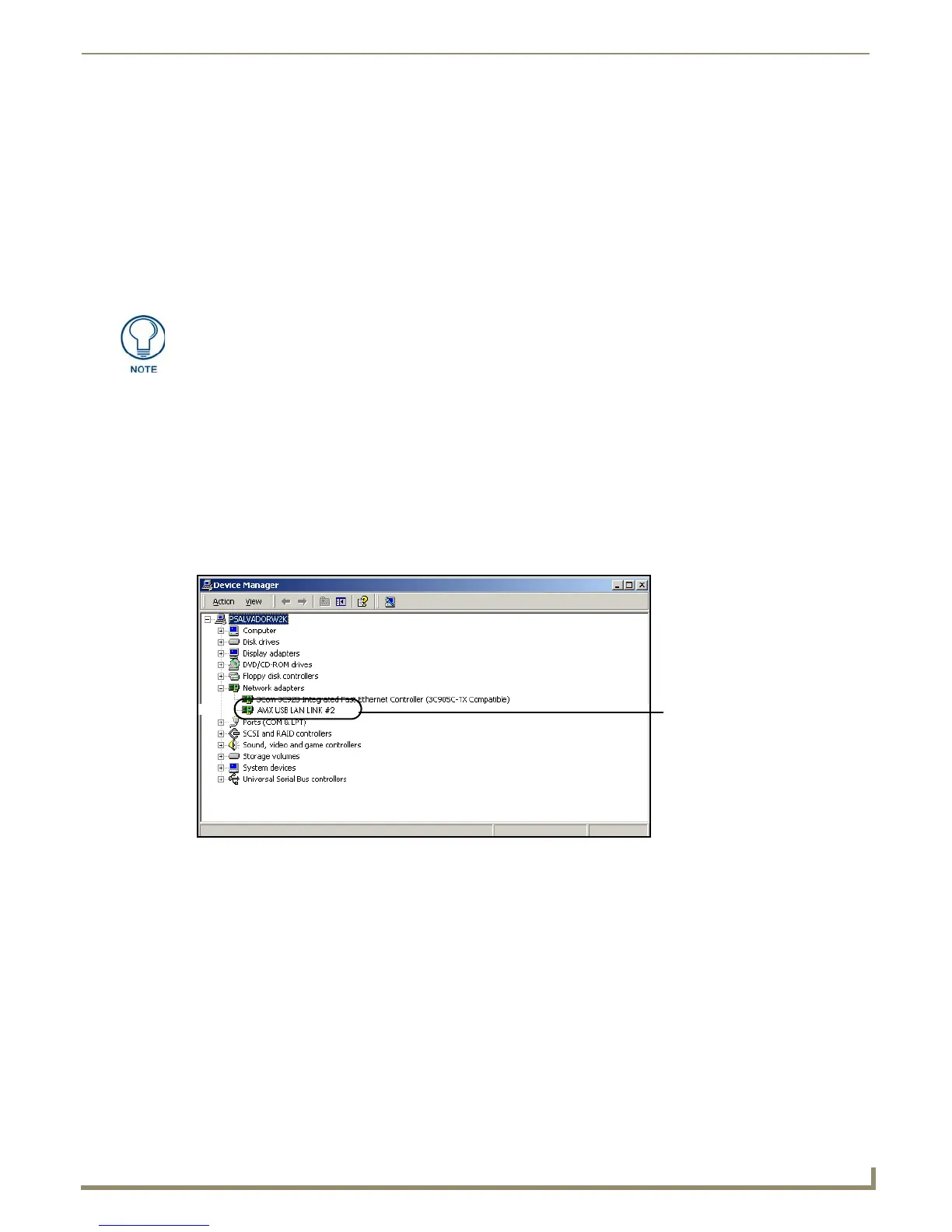 and has a unique name such as AMX USB LAN LINK #2. The number changes depending on which
