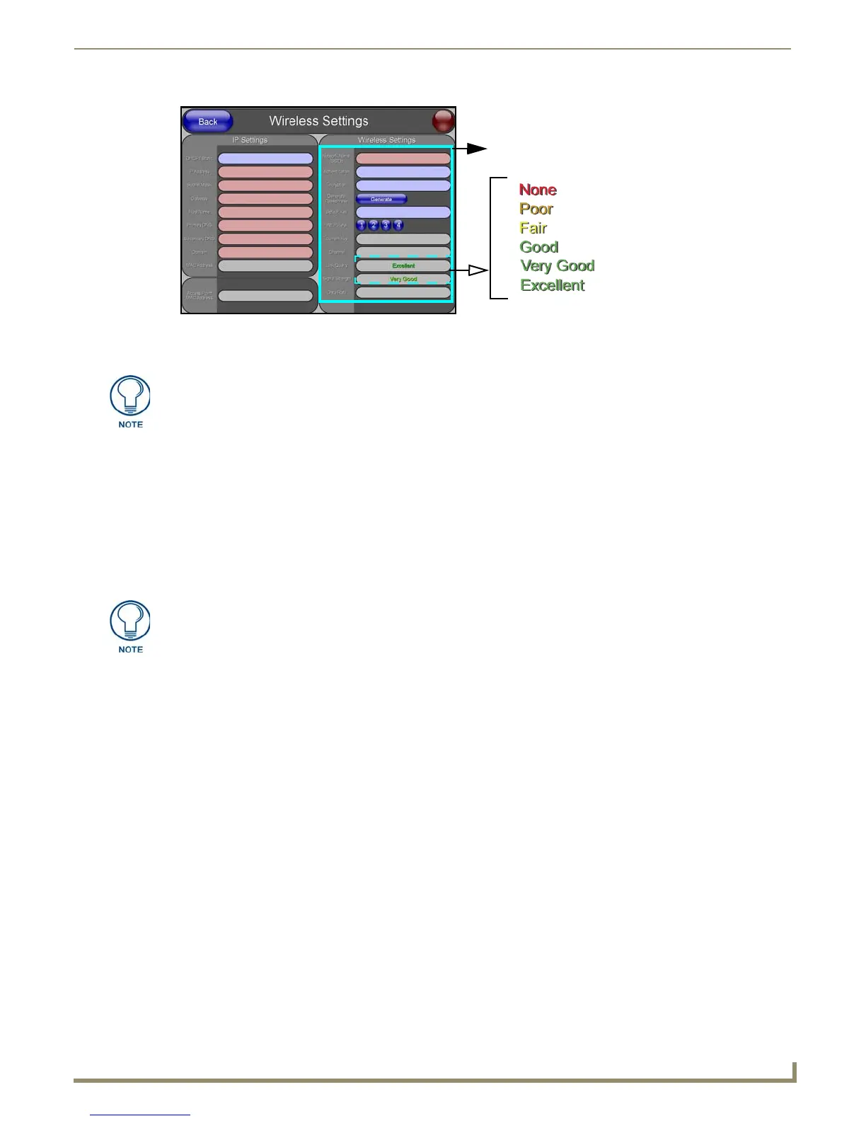 of the connection to a Wireless Access Point. If there is no signal or no IP Address