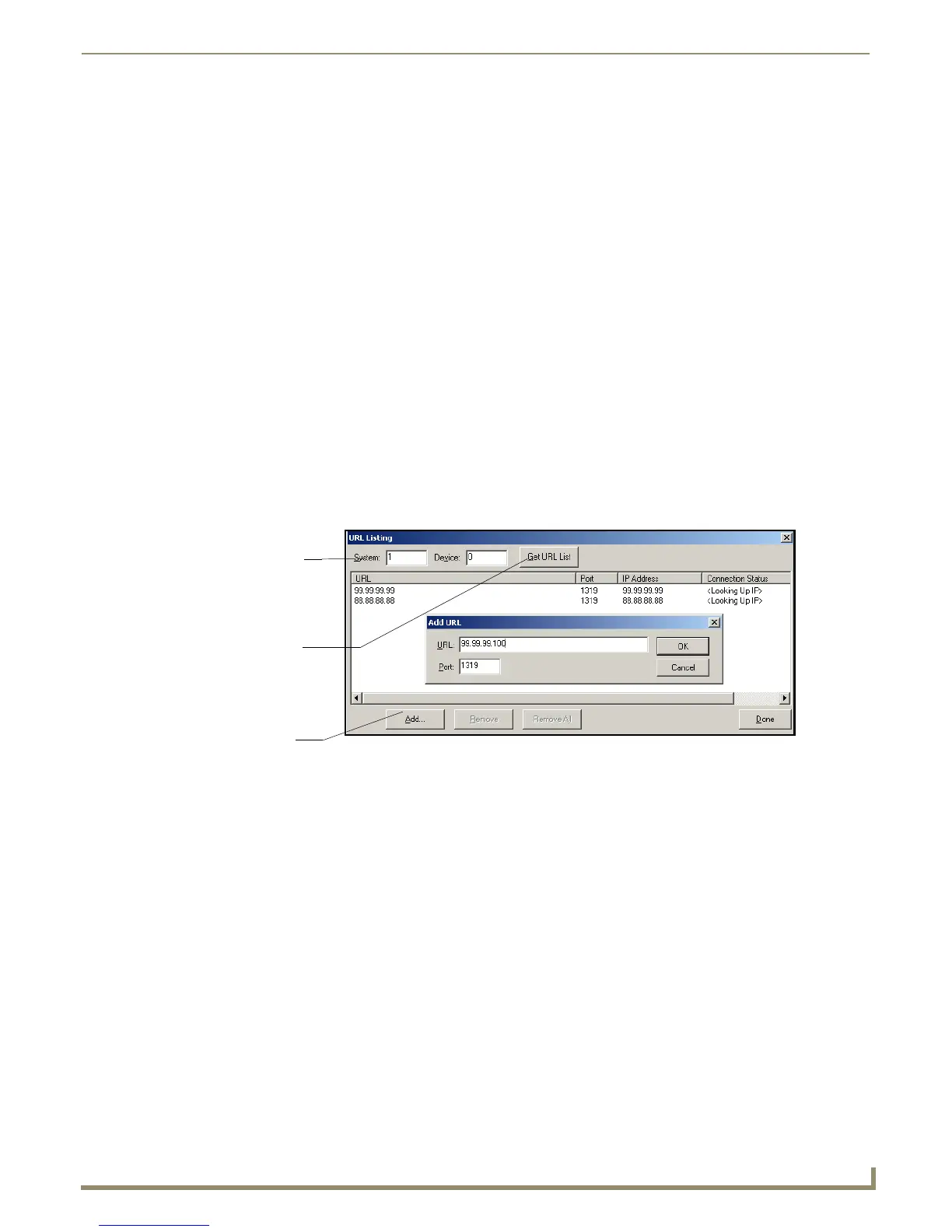 8. Click Add and enter the IP Address of the Modero touch panel into the Add URL dialog box.