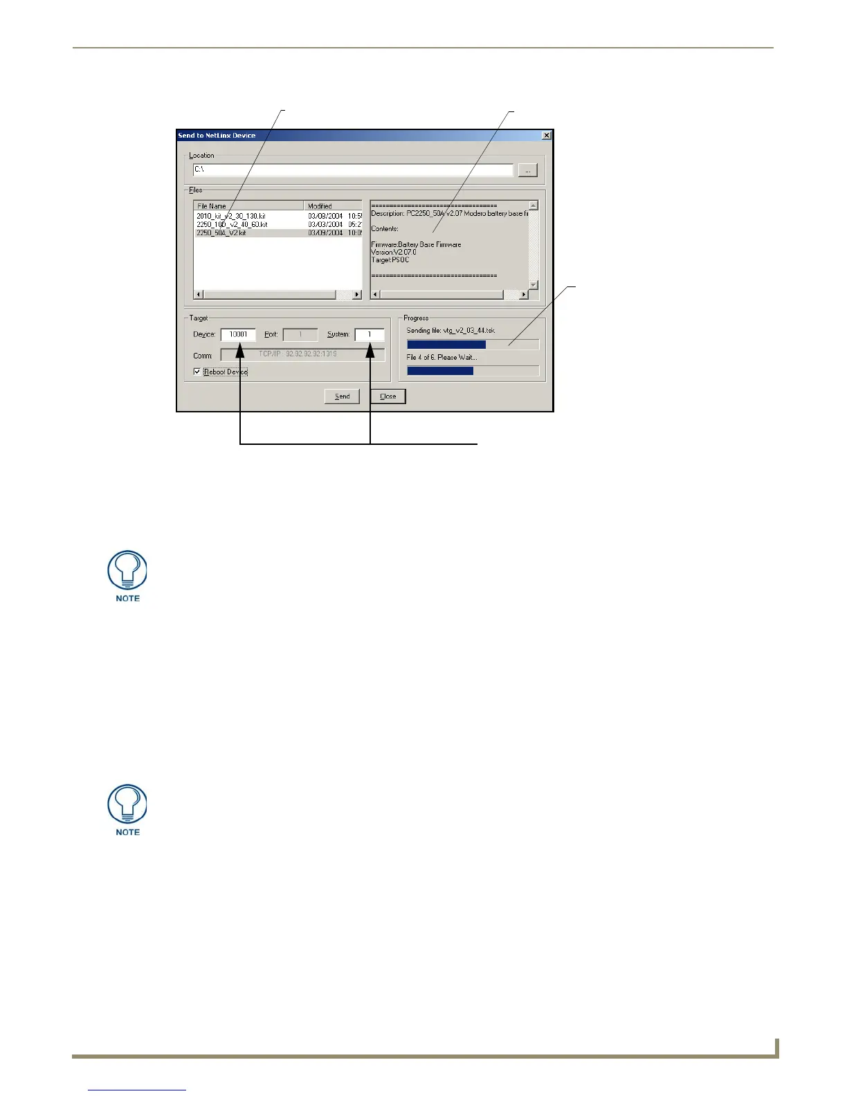 FIG. 81 Send to NetLinx Device dialog (showing NXA-BASE/B firmware update via IP)