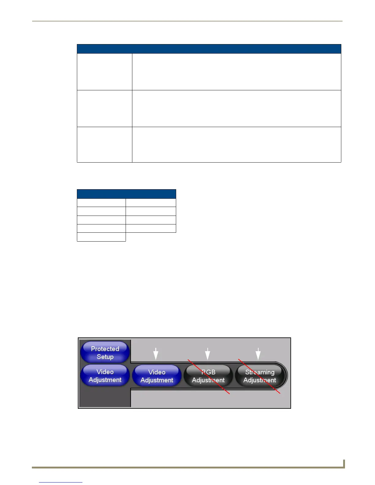 (RGB Adjustment and Streaming Adjustment) are only available on a VG-Series panel and are greyed-out