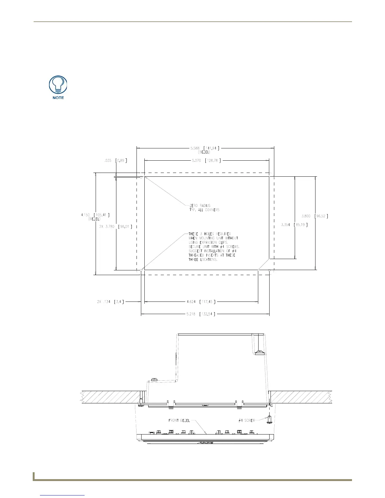 FIG. 9 NXD-500i Wall Mount panel dimensions using #4 mounting screws