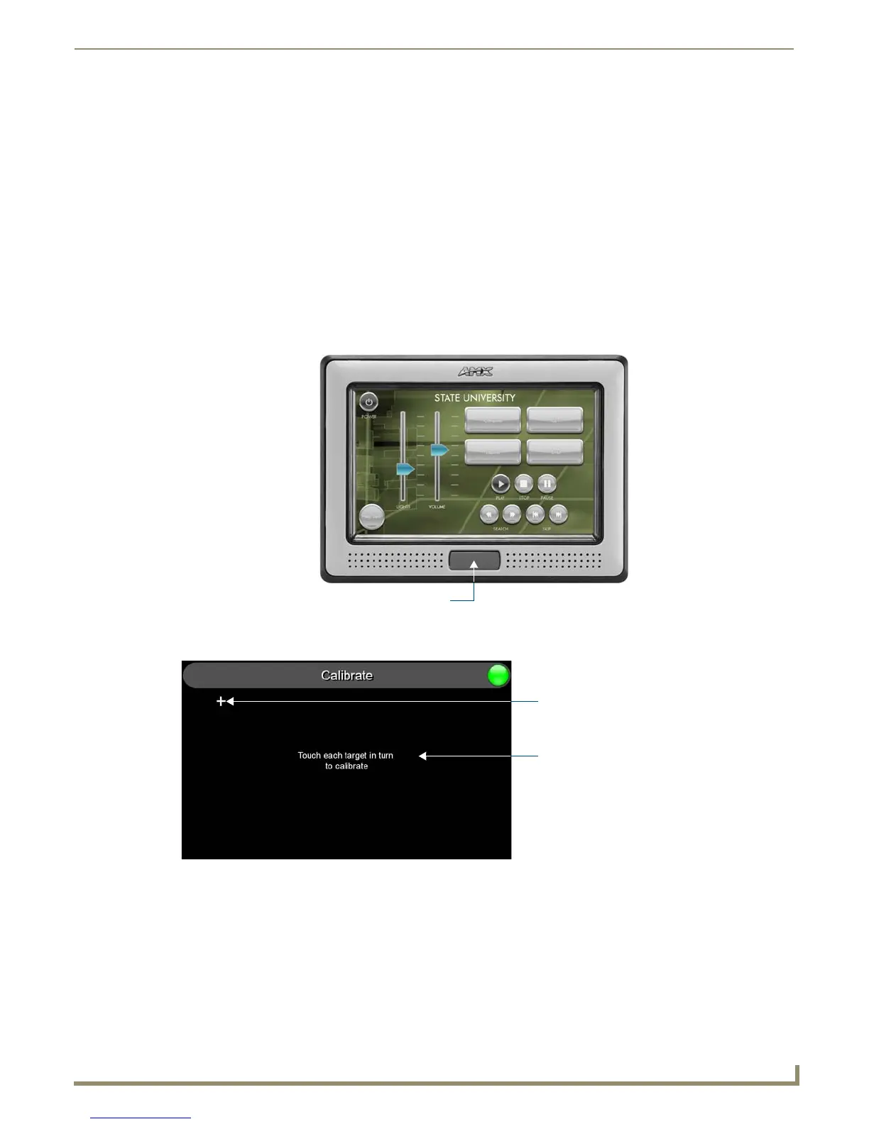 This action causes the panel to go to the Calibrate page seen above, where the actual touch panel may be physically