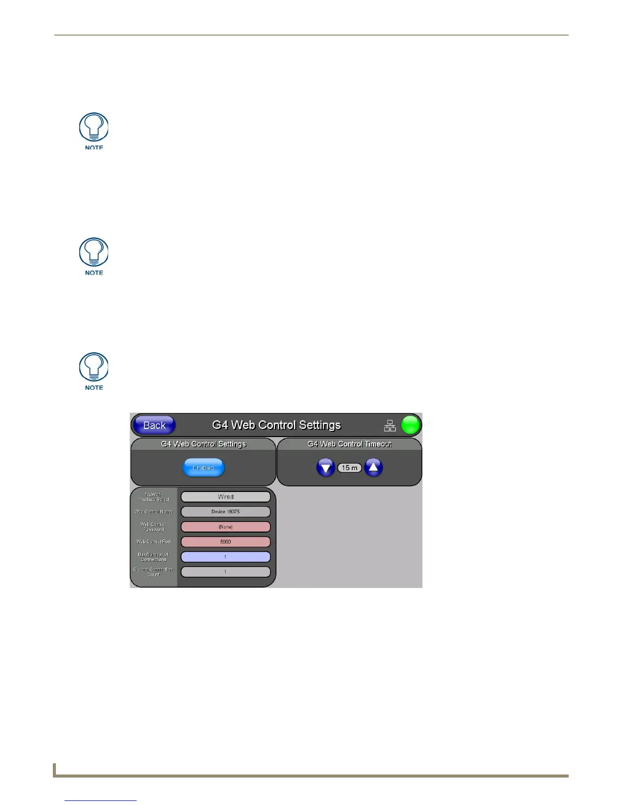 with the latest Modero panel firmware. Refer to the G4 Web Control Settings Page section on page 53 for more detailed