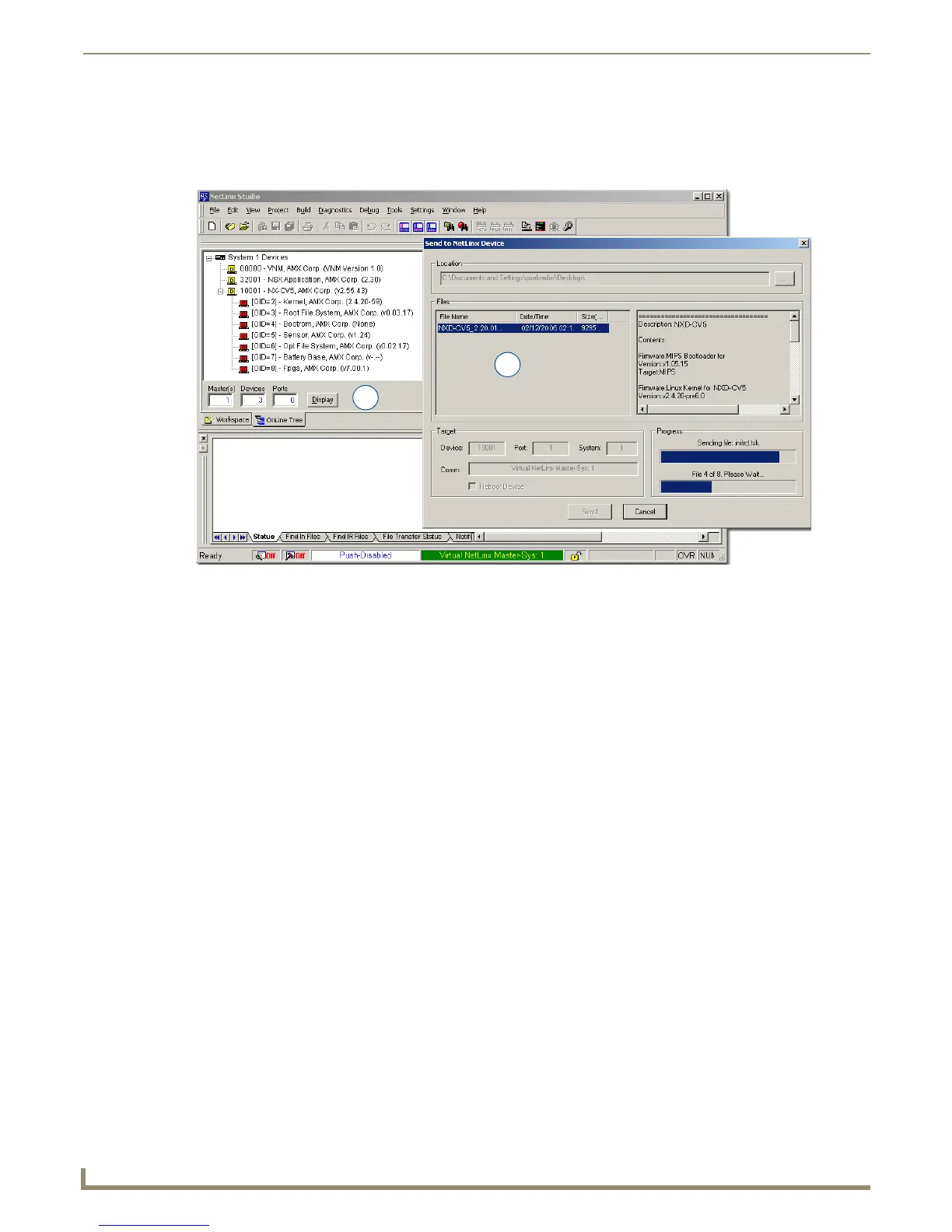 the Send to NetLinx Device dialog (B in FIG. 37).