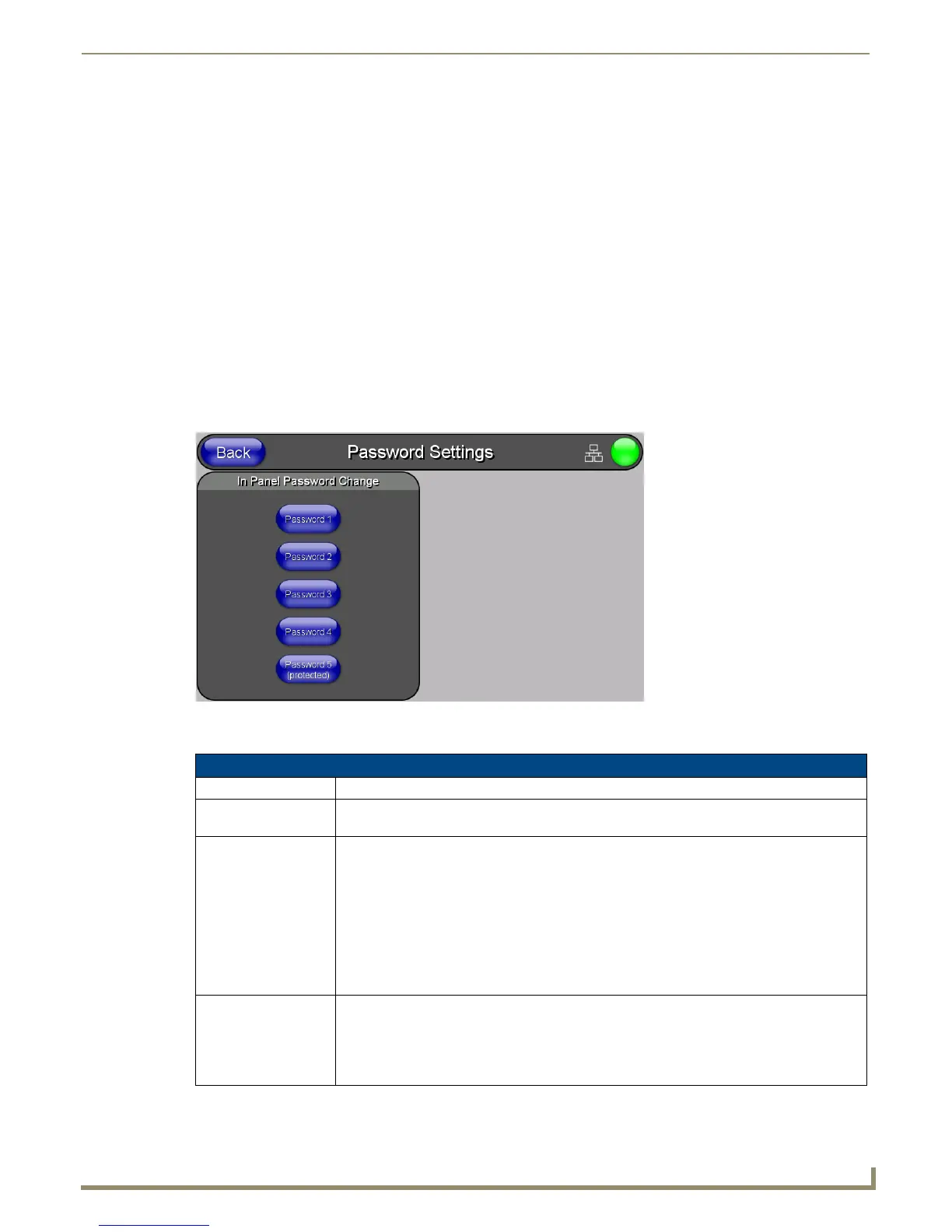 The options on the Password Settings page allow you to assign the passwords required for users to access the Protected
