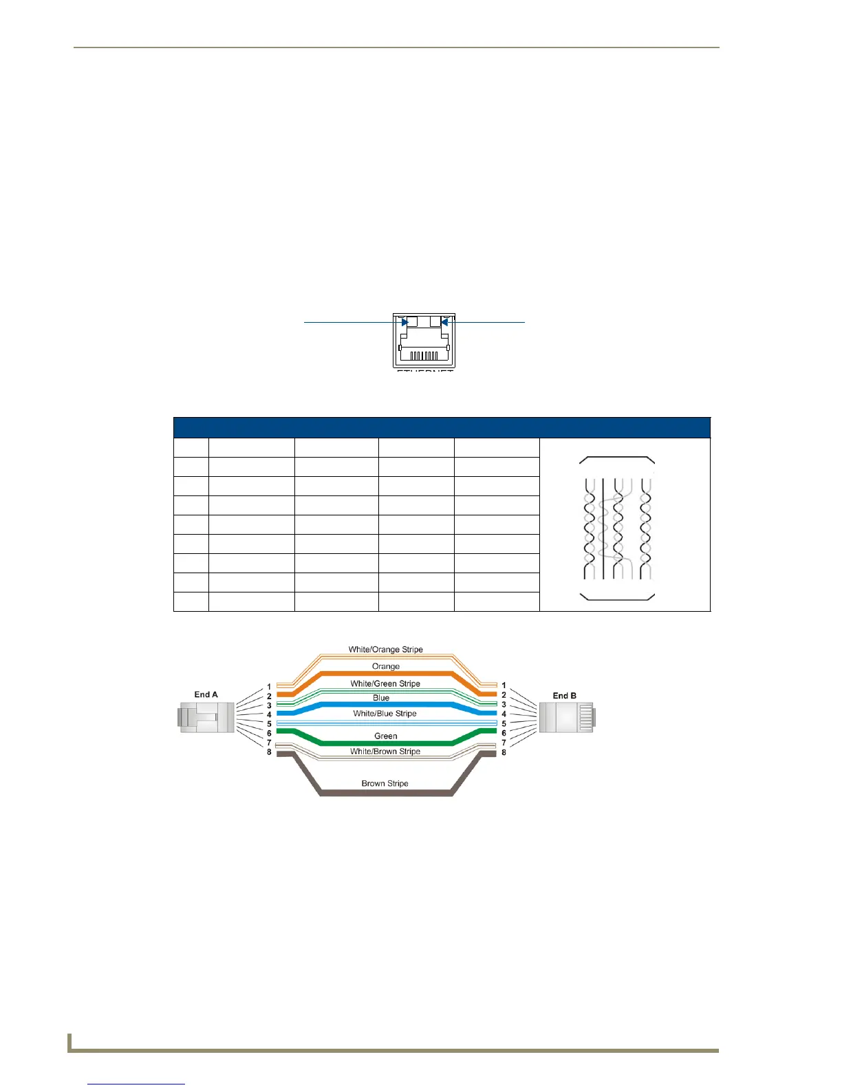FIG. 17 diagrams the RJ-45 pinouts and signals for the Ethernet RJ-45 connector and cable.