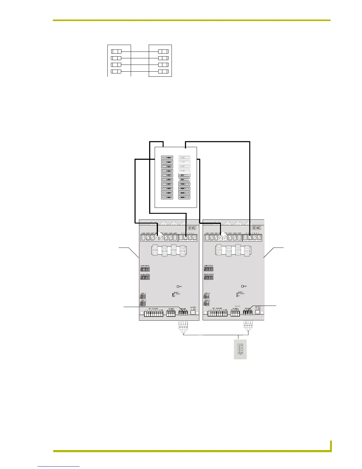 FIG. 19 shows an example of how to interconnect two AMX Lighting RDD-DM4 controllers and a