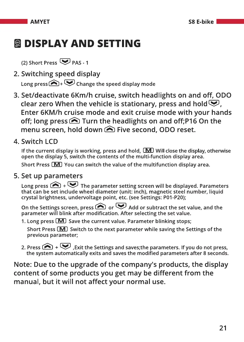 that can be set include wheel diameter (unit: inch), magnetic steel number, liquid