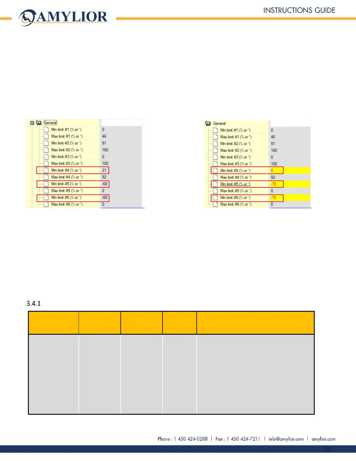 For custom limits: Note all settings beforehand. Replace them with values shown in the Default Settings
