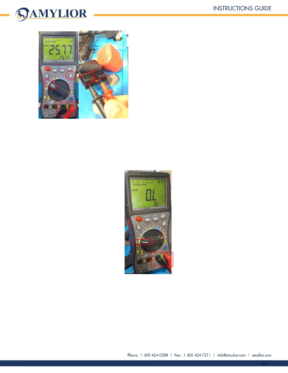• If the reading result is between 23.5 Volts and 27.5 Volts, check the cable as well as the connections