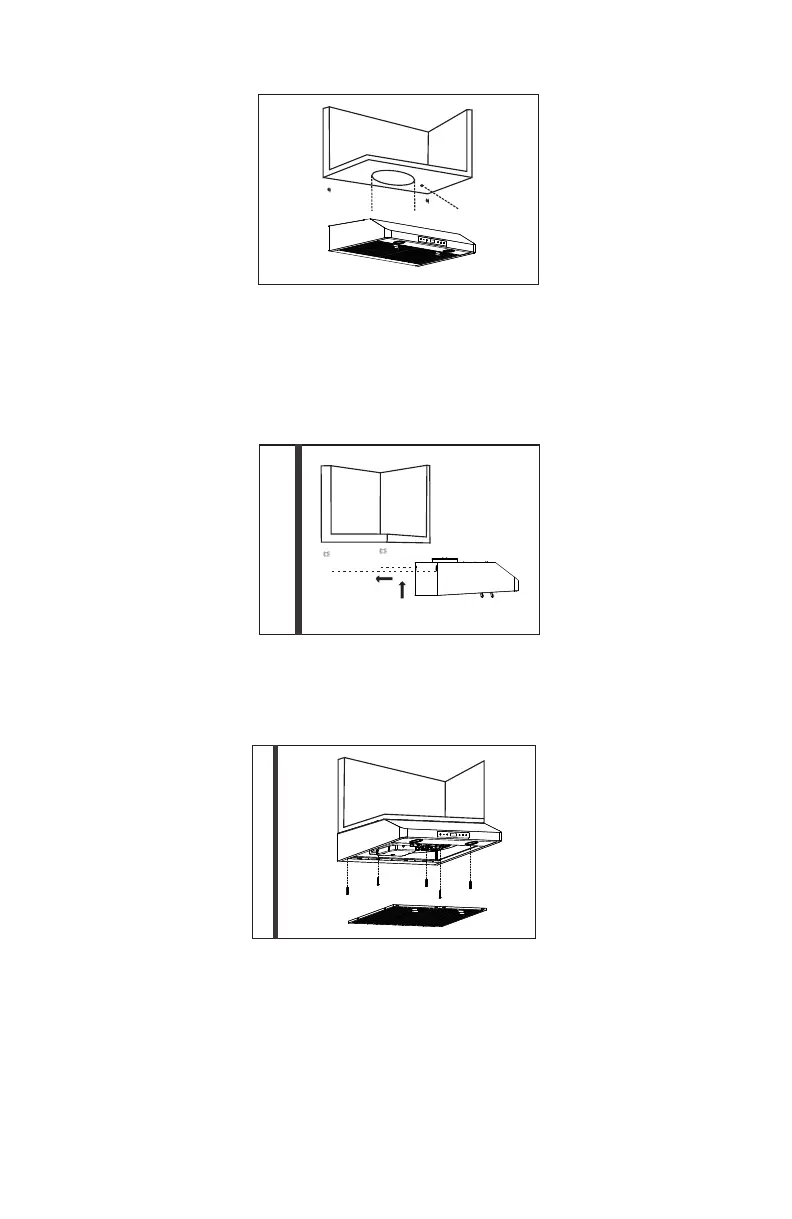 7. Lift the hood and hang the hood unit on the back wall using screws