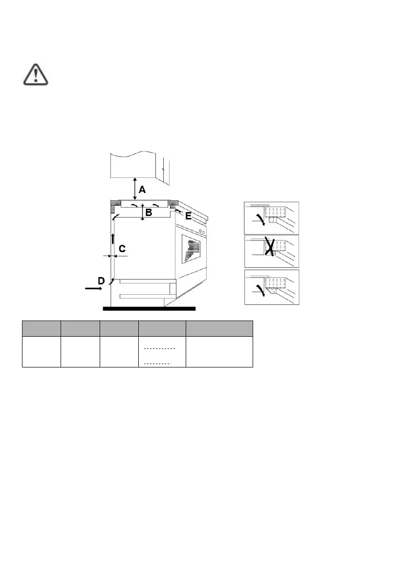 Nota: La distancia de seguridad entre las placas de cocina y la alacena ( parte