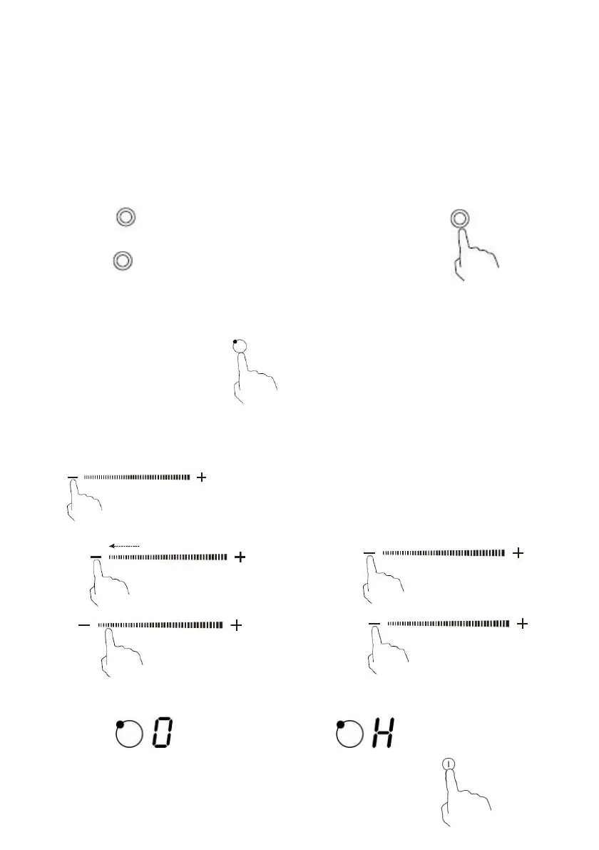 2. Para apagar la zona de cocción, toque el mando deslizante «-» y deslícelo hasta «0».