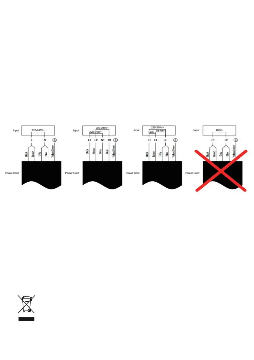 2. Si el aparato está conectado directamente a la fuente de energía principal, se debe