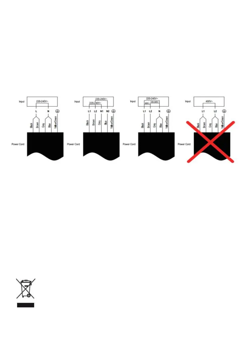 3. Der Installateur muss dafür sorgen, dass der richtige elektrische Anschluss