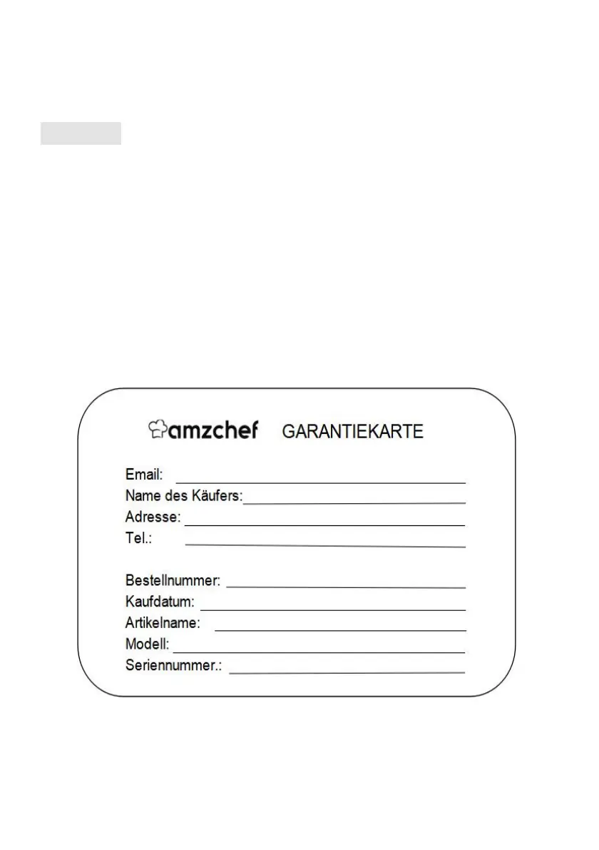 Vielen Dank, dass Sie sich für ein AMZCHEF-Produkt entschieden haben. Wir hoffen