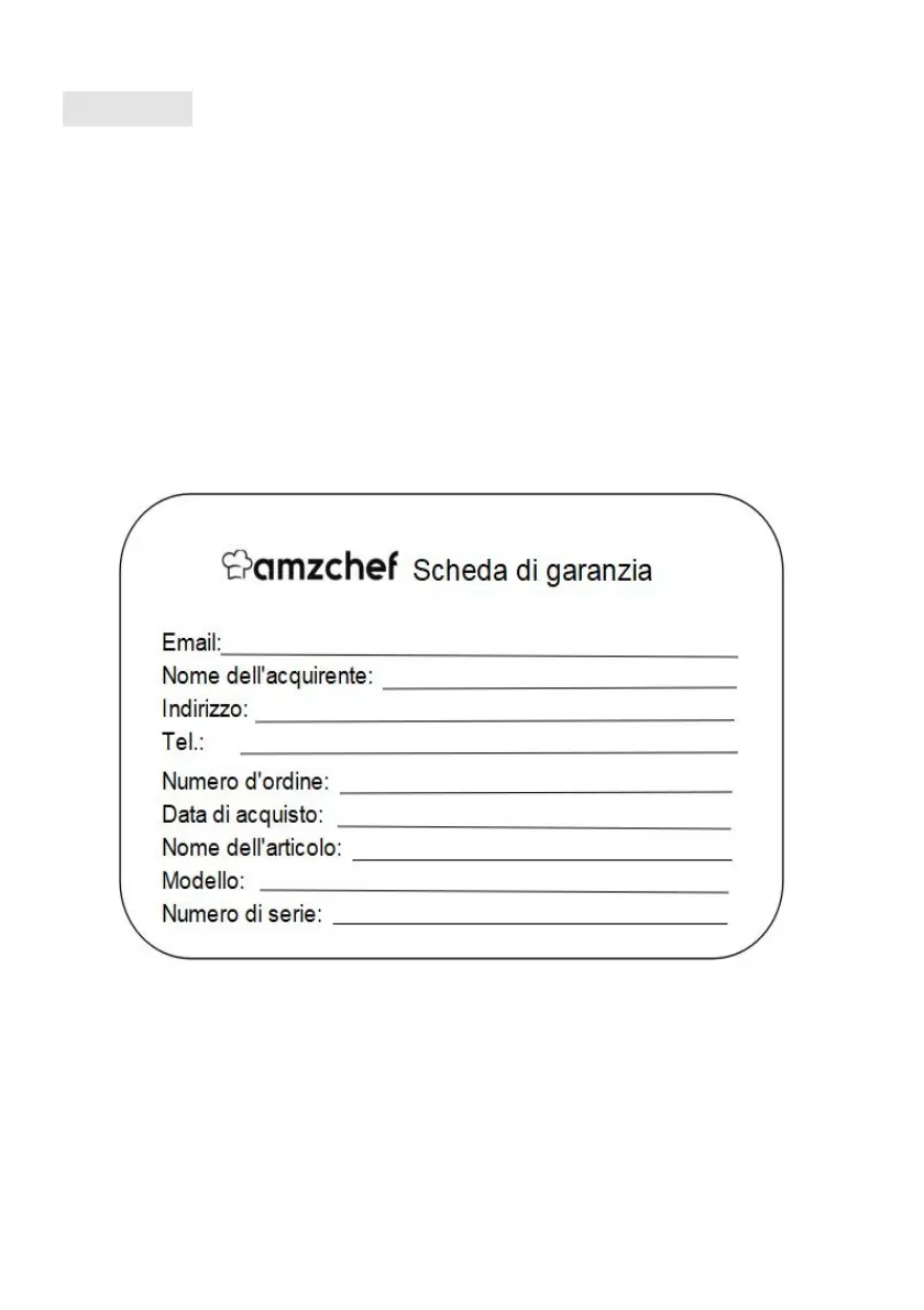 Si prega di rispedirci la scheda di garanzia dopo aver inserito le informazioni. Grazie per il