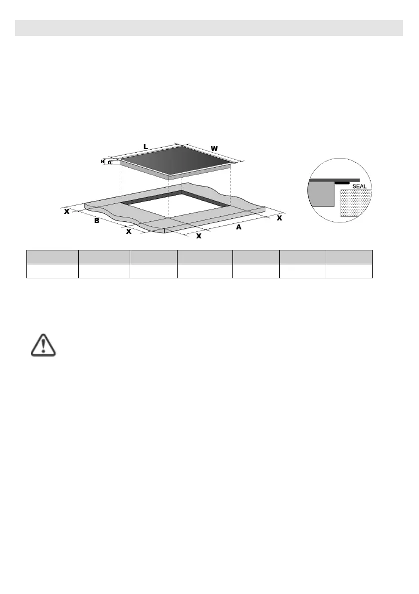 Note: The safety distance between the hotplate and the cupboard above the