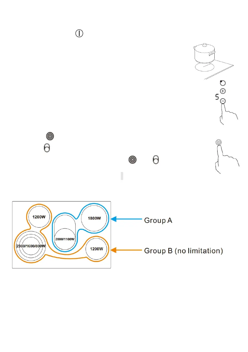 Wenn die beiden Zonen auf/über der Leistungsstufe 7 arbeiten, werden die beiden Zonen