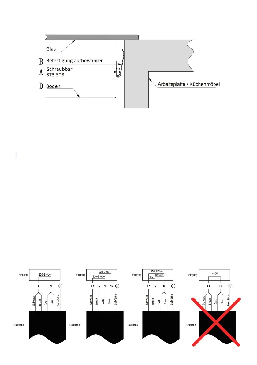 3. Das Keramikkochfeld soll so installiert werden, dass eine bessere
