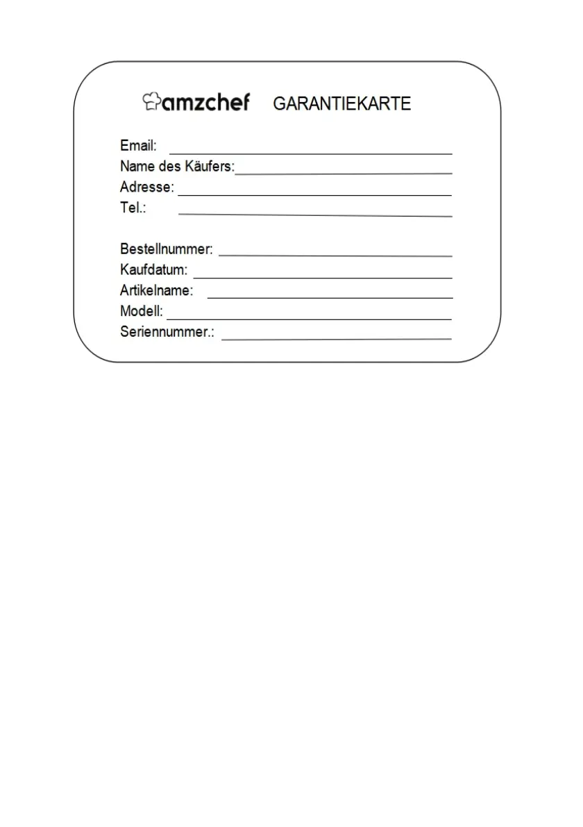 Bitte senden Sie die Garantiekarte nach dem Ausfüllen der Informationen an uns zurück. Danke