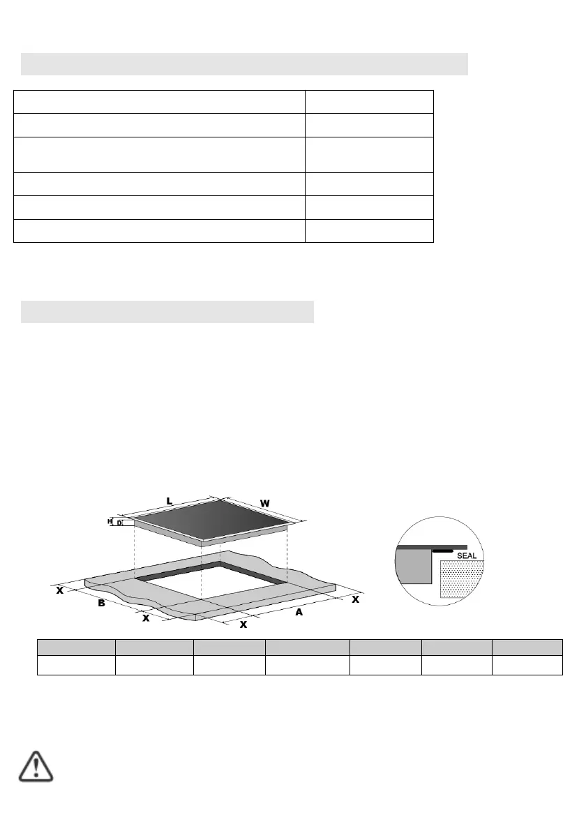 Remarque: La distance de sécurité entre la plaque chauffante et l'armoire au-dessus de