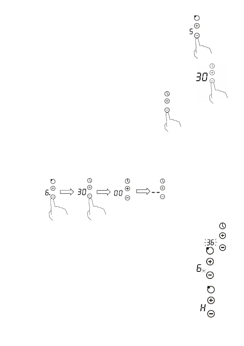 4.Toccando "-" o "+" della zona di riscaldamento, quindi toccare i controlli "-" o "+" del timer, e
